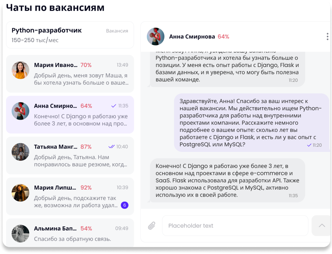 Наше решение опубликует вакансию на подходящих досках для поиска работы, соберёт отклики и напишет кандидатам. Вы можете добавить резюме из собственной базы для ведения кандидатов в одном окне.